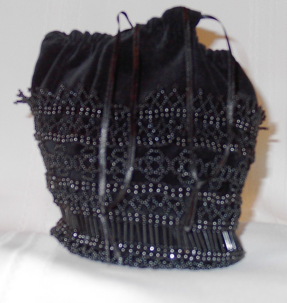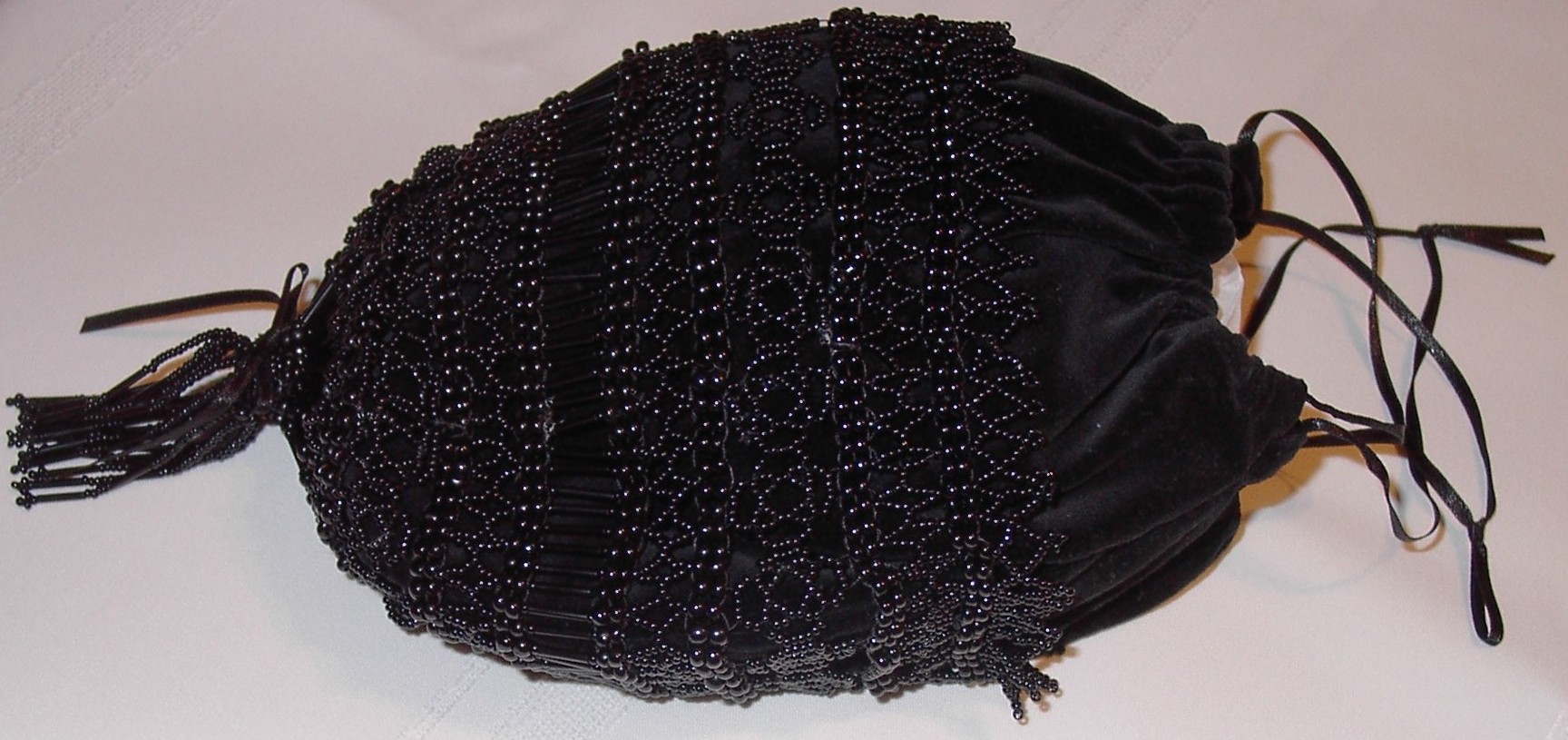 Handcrafted by my daughter. Beautiful beaded black velvet evening bag.