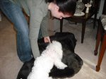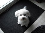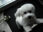 I received a unique, cute and cuddly Christmas present. At 5:00 PM on Christmas day our doorbell rang. Wondering who on earth would ring our doorbell at that time I opened the door. What I saw was a couple with the cutest little Bichon Frise puppy. The puppy was my Christmas present. I named him Montegard but he was so little we ended up calling him Monty. I took him in my arms and he immediately laid his head against my shoulder and looked up at me with those big gorgeous black eyes.