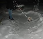 I read for a while this afternoon while Monty had a snooze beside me. He is so adorable. I make it a point of not going shopping on Boxing Day however my daughter in law persuaded me to go the pet store as soon as we had finished breakfast. Needless to say Monty is going to be spoiled rotten. We forgot for a minute that he is a boy dog and bought him a pink harness. Monty doesn’t mind. My husband decided to take Monty on his first walk since joining our family. He took a gym bag with him in case Monty got tired or his little feet got cold.