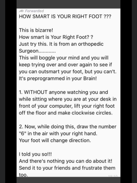 I would love to hear from you after you try the following called “How Smart Is Your Foot?”