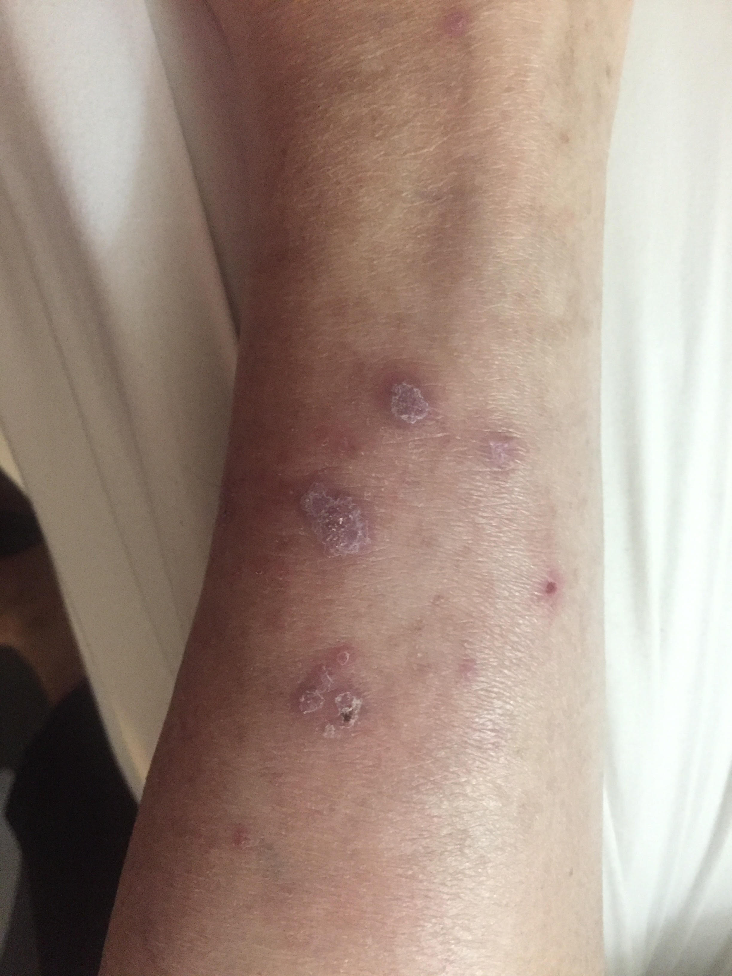 Sampling of sores on right leg.