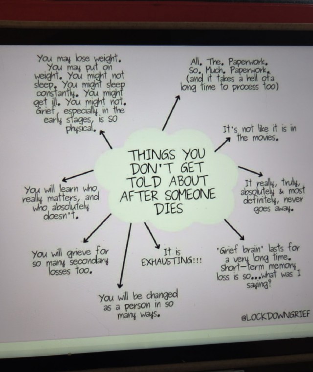 My sister, who has been a widow for eleven years, sent me a chart detailing the difficult process of grief.